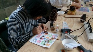 どんぐりや松ぼっくりを使ってツリーを作りました。(昨年も開催)