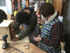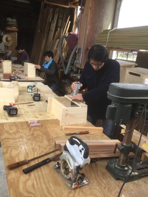朝10時からはじめて、お昼ごはん休憩をはさんで午後からからくりの・・鍵・・の製作