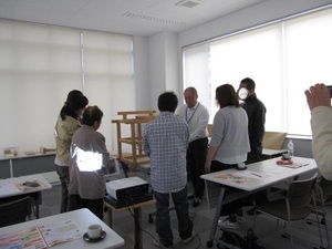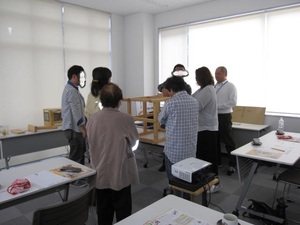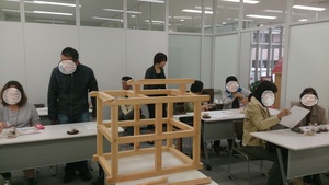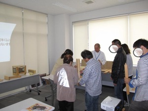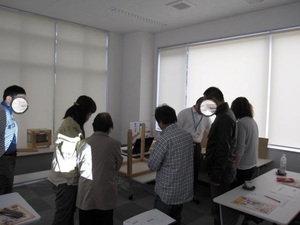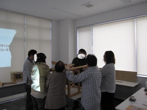 みなさんで模型を使ってミニ棟上げをしていただきました。