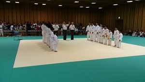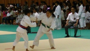 (団体戦) 小学校1年生~中学3年まで1チーム9人で、戦いました。