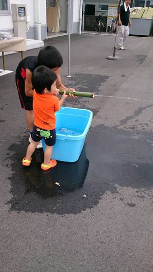 こどもたち夢中で飛ばして、最初は的に当てることが難しくても少し練習をすると