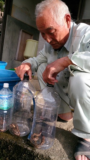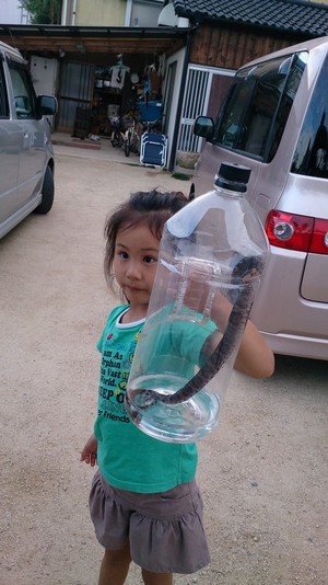 このお父さんすごいんです。 この生きものは なんでしょう 噛まれたら、死ぬかも ペットボトルのなかみは、まむし