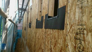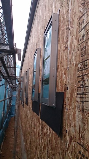 先張り防水シート工事をしました。万が一サッシより上部から雨水の侵入があった場合