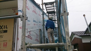このところお天気が不安定なので外部の仕事、軒天工事を終わらせました。