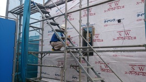 雨水の侵入の恐れのある箇所(換気の取り入れ口等)のテープの施工をチェックします。