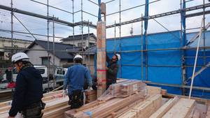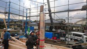 最初の1本目(大黒柱)はお施主様に建てていただきました。