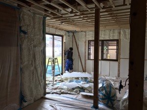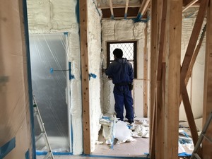 1階部分(お風呂を除く)をすっぽり発泡ウレタンで吹付してます