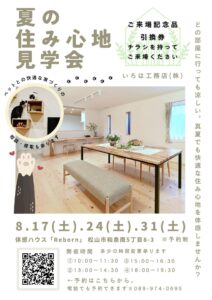 | 開催場所 | 弊社体感ハウス「Reborn」 松山市和泉南5丁目8-3 |