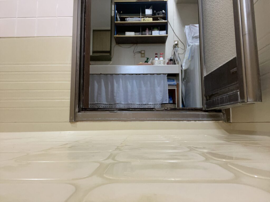 浴室リフォーム前は、約10cmの段差がありました。折れ戸+段差は出入りにかなり気を付けられていました。