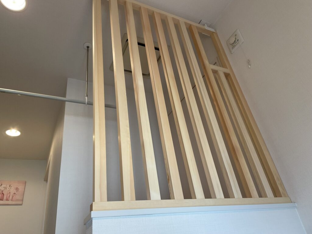 階段の吹き抜け部分に猫が落下しないように防止柵を取り付けたい。